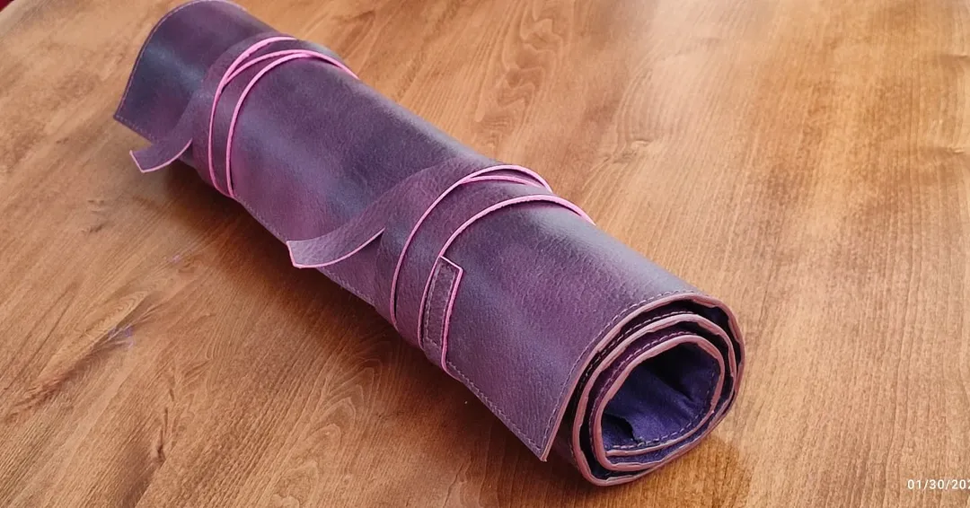 لفافه چرمی تسبیح دستدوز از چرم طبیعی گاوی (۲۰تایی)